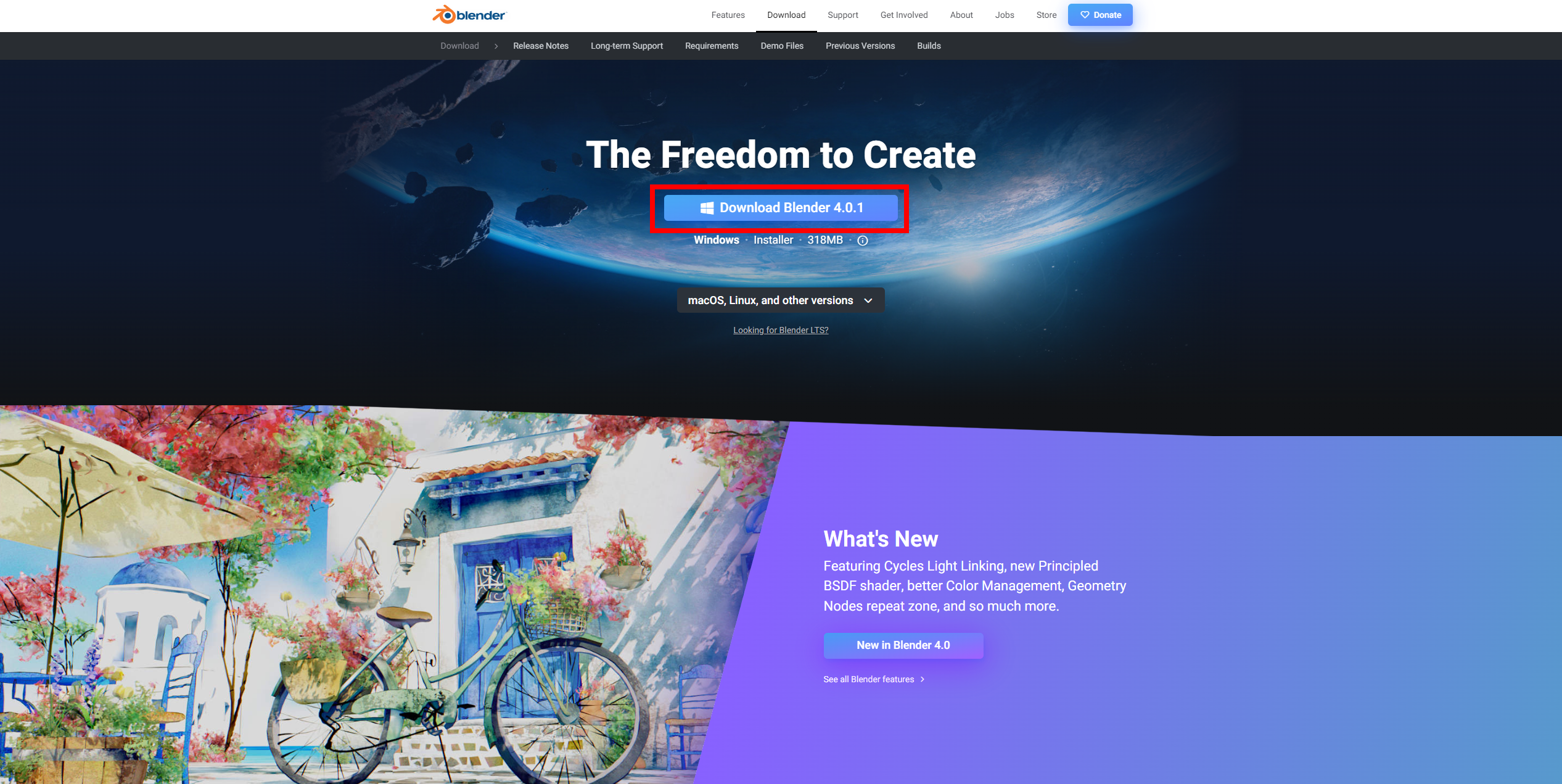 Download Blender를 클릭하시면 설치파일이 다운로드됩니다.